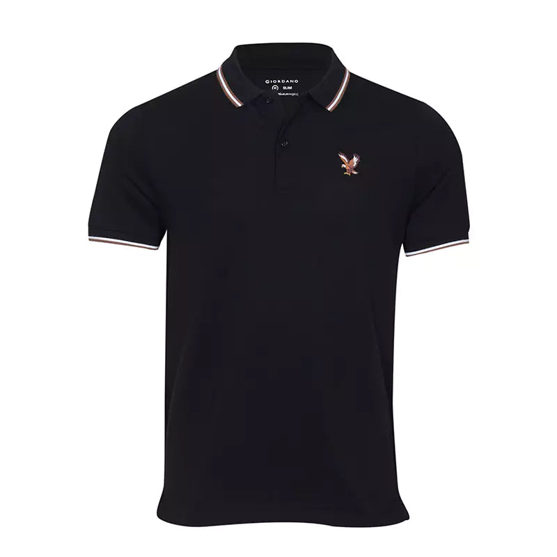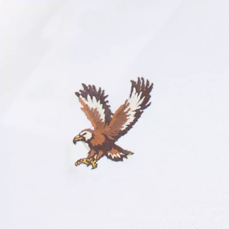 This eagle polo shirt is a versatile addition to any men's wardrobe. Crafted from a blend of soft cotton and Lycra for comfort and durability, the pique fabric provides a textured look and breathability. The flat knit collar adds a touch of sophistication, while the short sleeves offer a relaxed fit. The standout feature is the embroidered eagle design, which adds a touch of personality and style.
