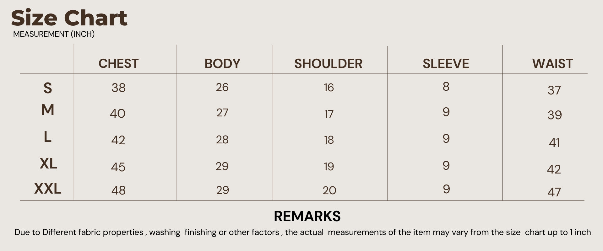 SIZE CHART (in)
